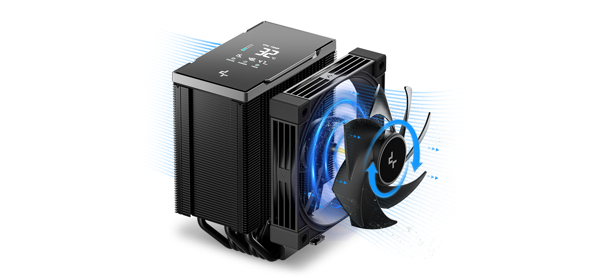 The AK700 DIGITAL NYX showcases DeepCool’s pursuit of precision and innovation. Featuring a bold single-tower design with seven advanced heat pipes and a high-end digital display, it delivers elite cooling performance while offering real-time monitoring—perfect for enthusiasts who value both efficiency and standout style.