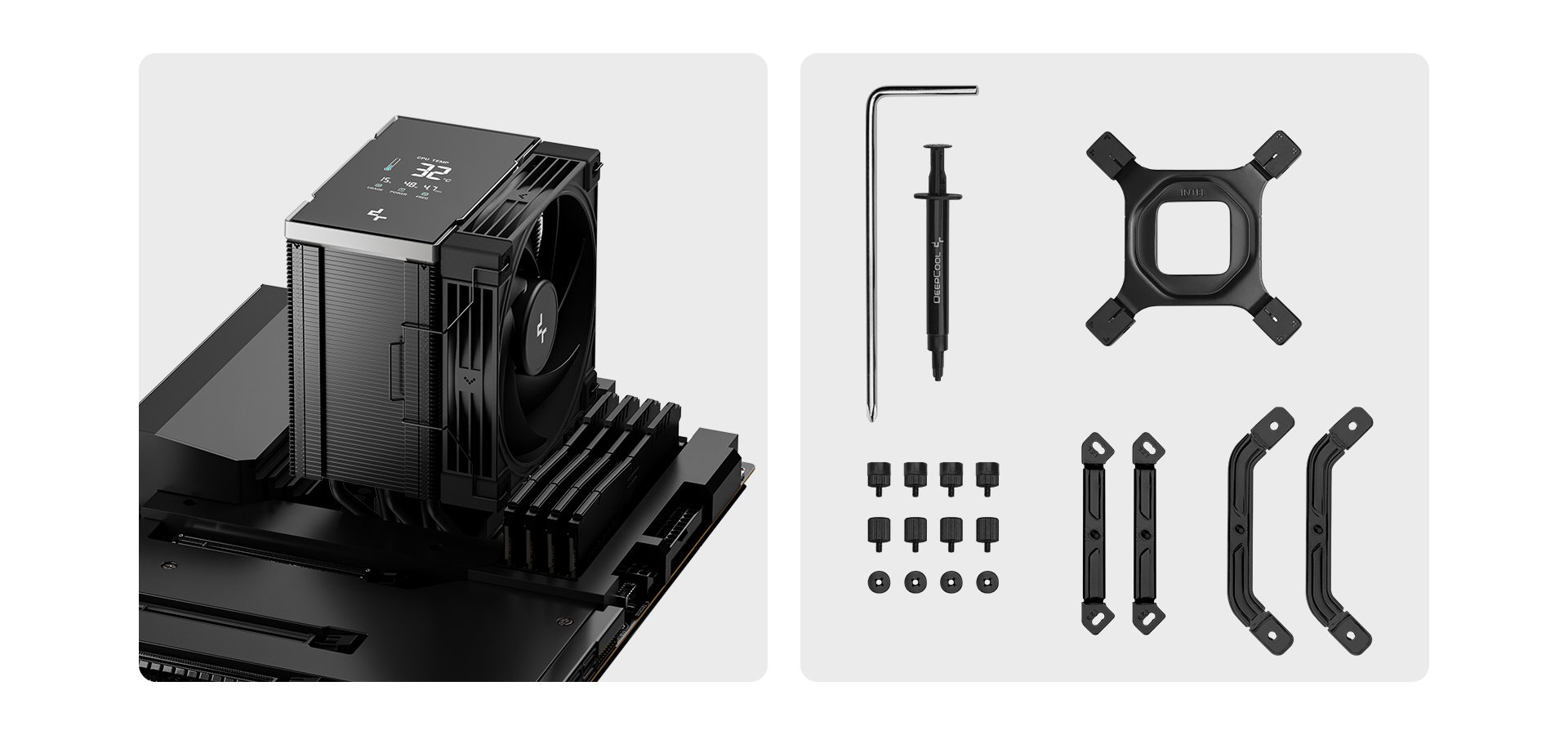 DeepCool has engineered the AK700 DIGITAL NYX with durability and user convenience in mind. The mounting bracket provides a sturdy, straightforward installation process that ensures proper contact and equal pressure on both Intel and AMD platforms. The durable hardware and included tools guarantee a secure, reliable setup for long-term stability.