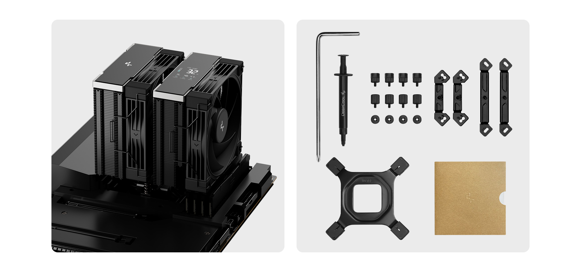 DeepCool has engineered the AK G2 DIGITAL NYX with a focus on durability and ease of use. The durable mounting bracket ensures a sturdy, hassle-free installation on both Intel and AMD platforms. Exclusive to the AK620 G2 DIGITAL NYX, the offset mounting solution enhances RAM clearance and multi-platform compatibility. The included tools provide added convenience, ensuring a secure and reliable setup every time.