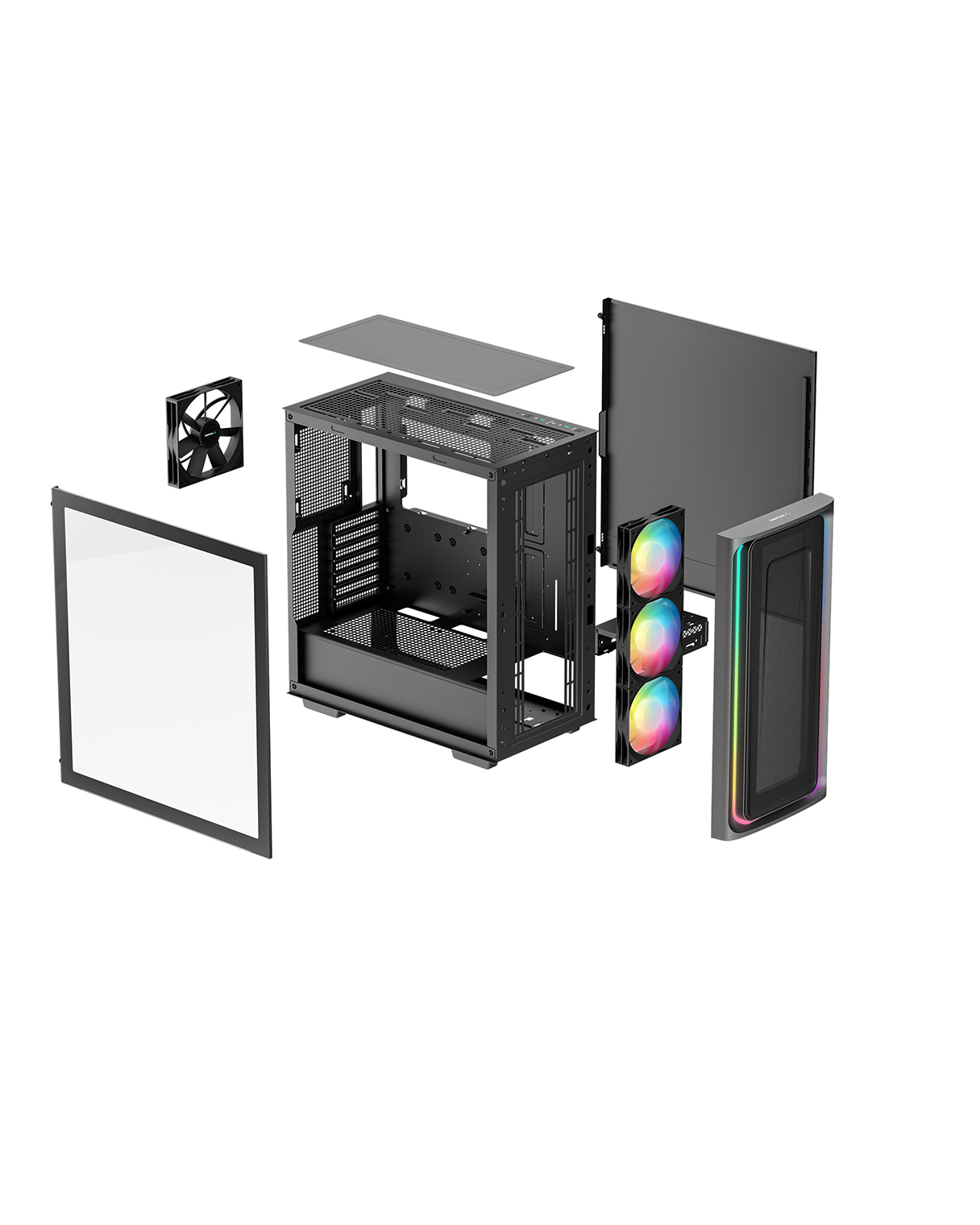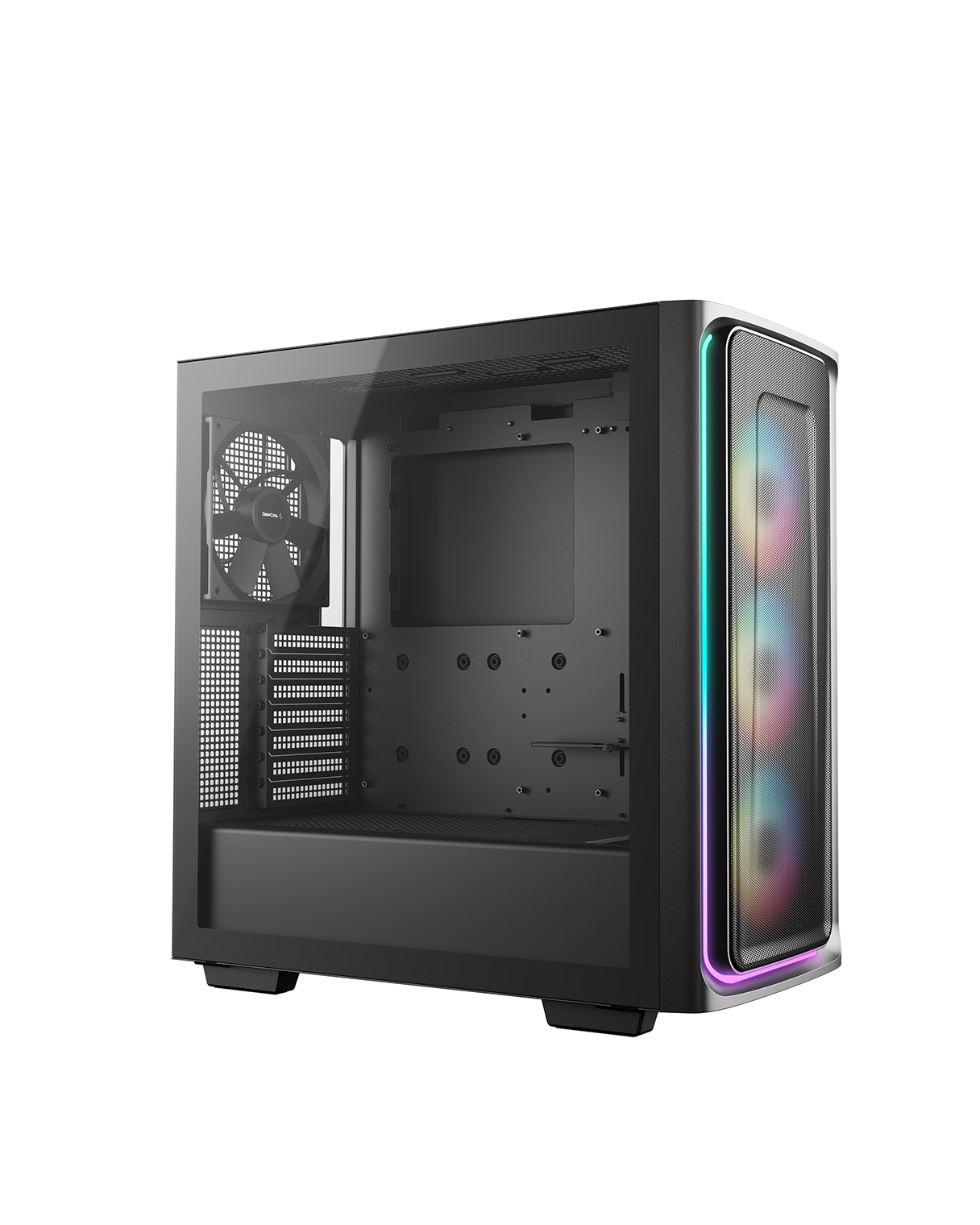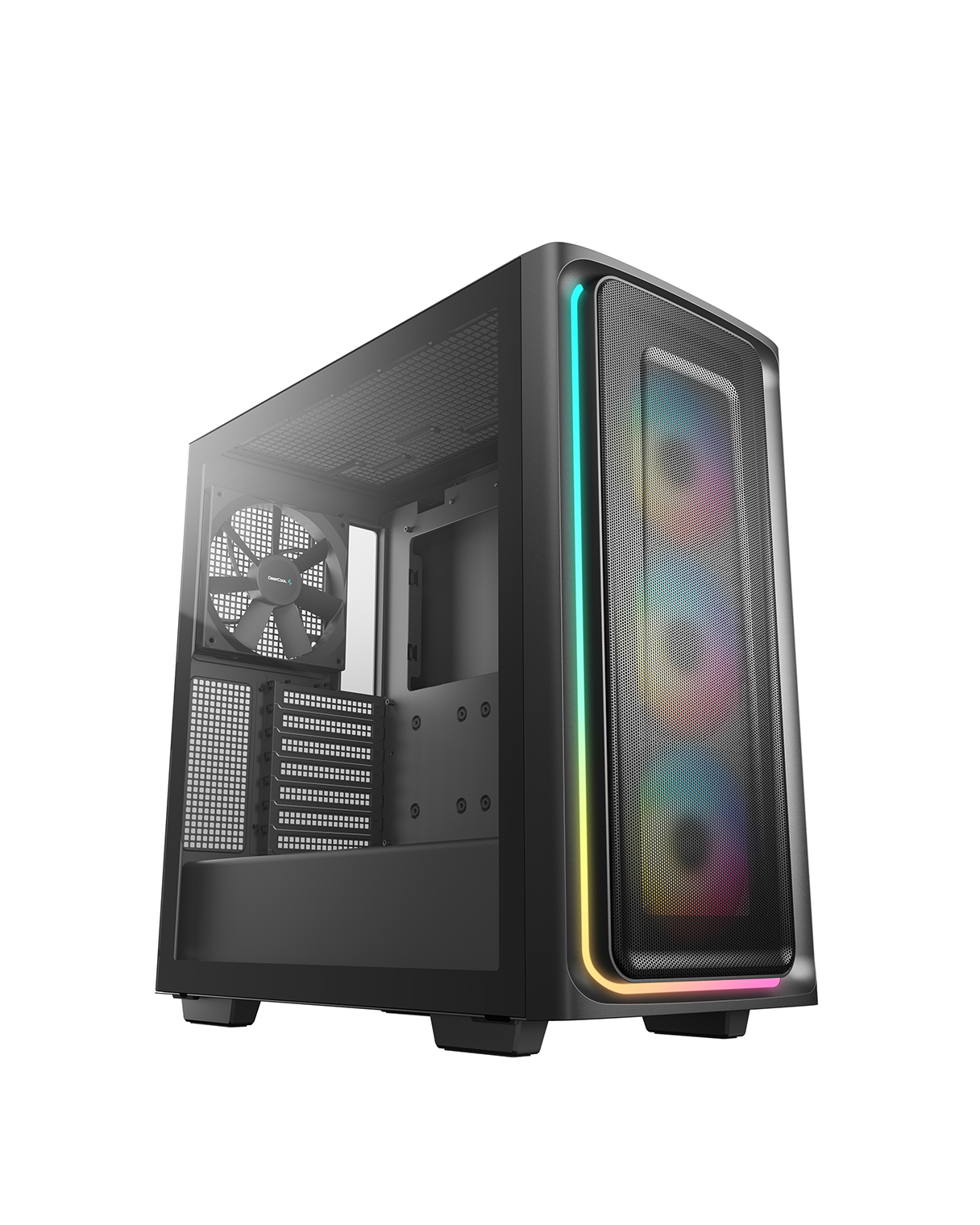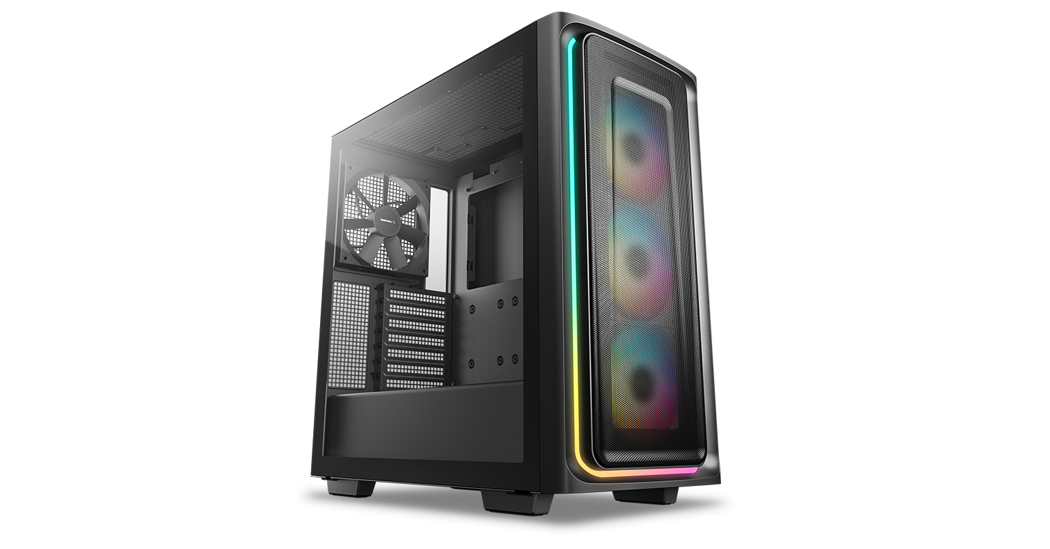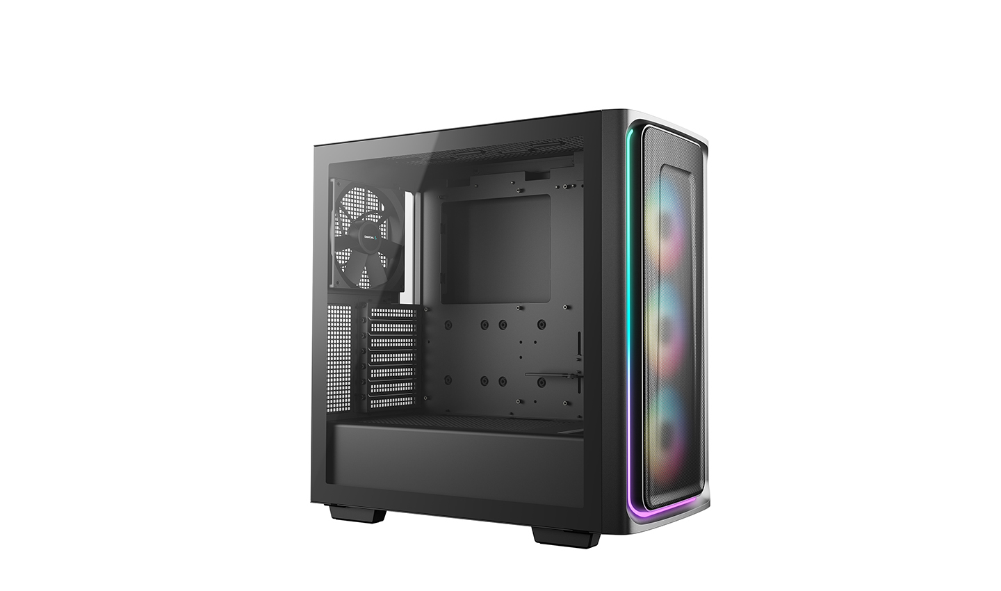 The DeepCool CG540 MESH Mid-Tower Case displays a striking tempered glass panel and generous cooling capacity in an updated modern design that makes system building a breeze with four pre-installed fans.