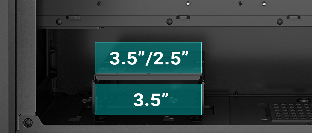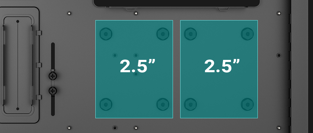 Install up to 3x 2.5” SSDs directly on the backplate and 2x 3.5” HDDs underneath the shroud for ample storage discreetly tucked away.