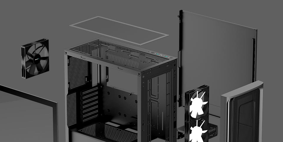 Quickly get to your internal components with simple slide and latch side panels and a solid tempered glass window to highlight your system.