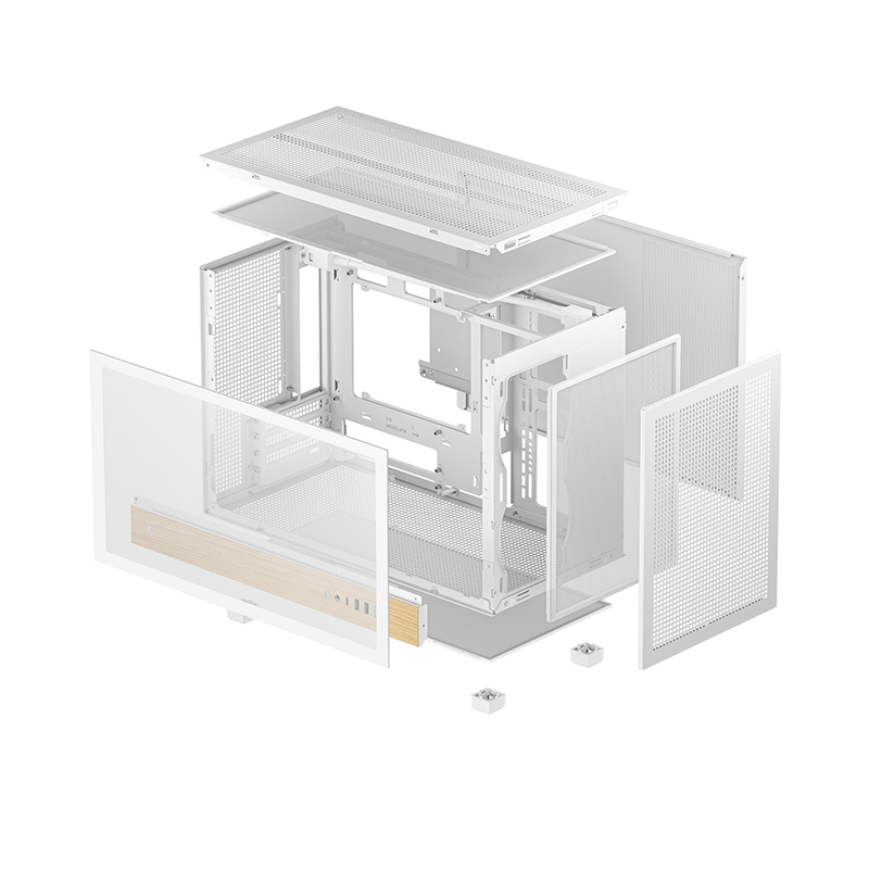 The Micro Form Factor CH260 WOOD WH comes with a tempered glass side panel to give your modern internal gears a show as the perforated top and front panels can be decked out with PIXEL rubber bits. The case also meets the rising demands for rear connector motherboards with a wider clearance of 29.6mm in the backplane.