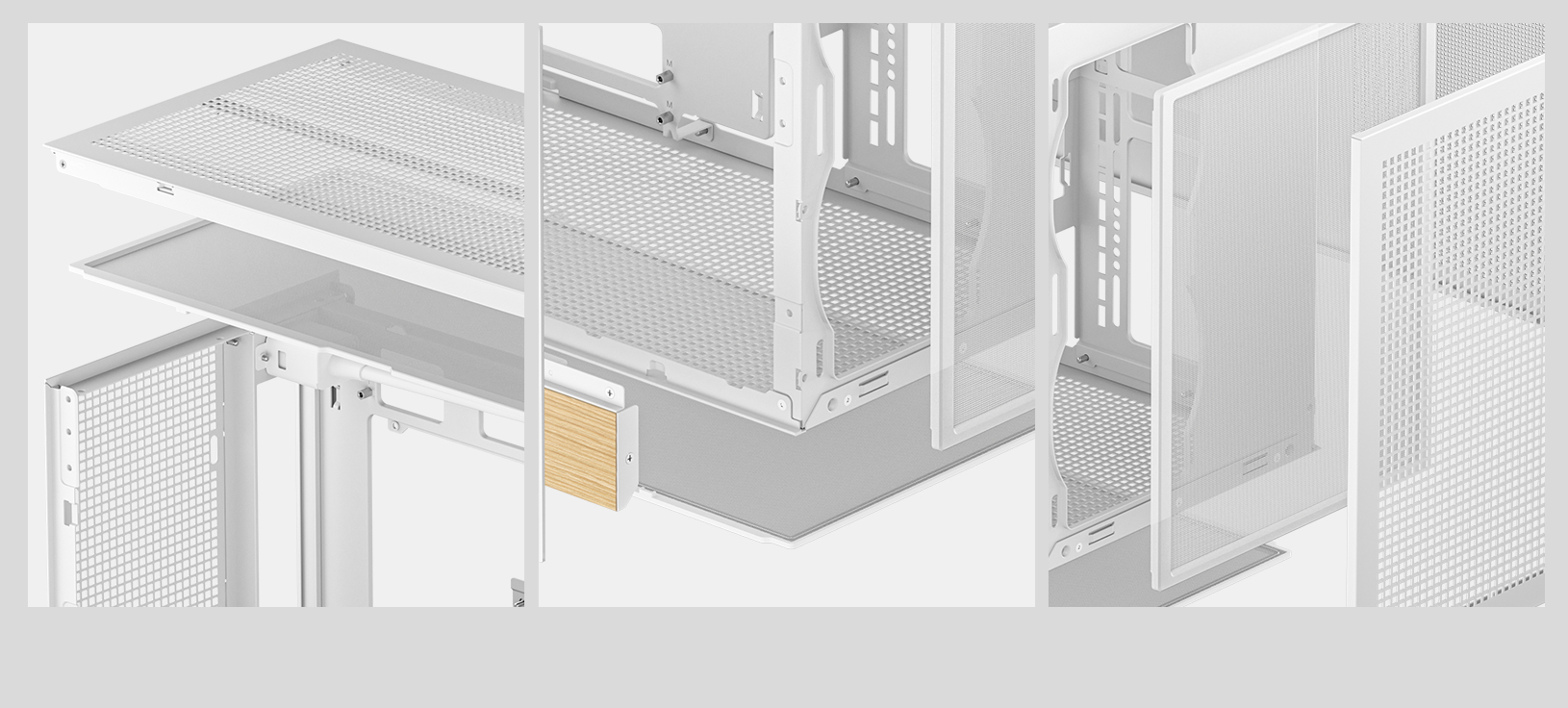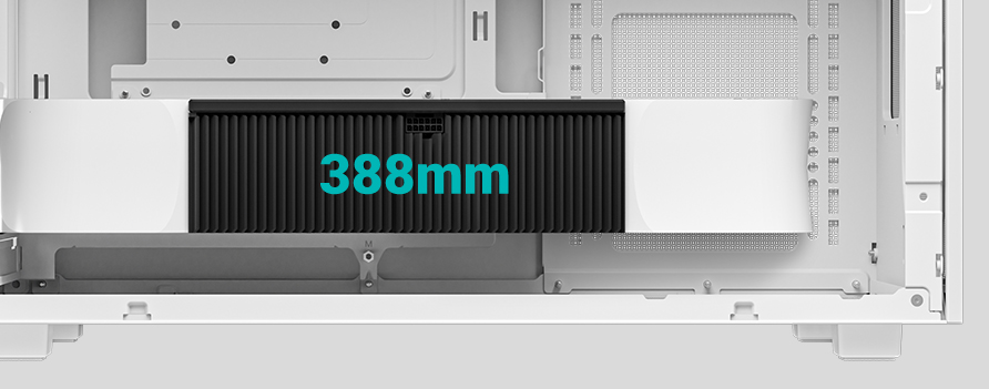 The CH260 WOOD WH provides multiple options in key components compatibility which can support full-size GPU up to 388mm in length or goes even longer to 413mm without front fan placement. ATX PS2 power supply can also fit into the case with a removable mounting bracket to free up space for easy cable management.