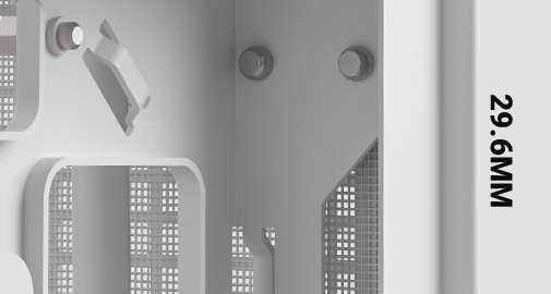 The wraparound mesh panels and up to six 120mm fan placements effectively ensure cool air flows through the compact system and takes heat away. The maximum thermal hardware can go up to a 360mm AIO liquid cooler on the side or a 174mm high tower heat sink on the CPU.
