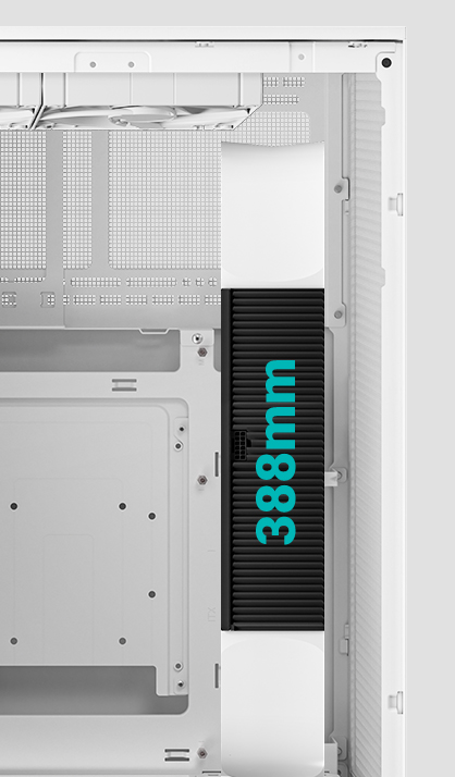 Upgraded on the precedent CH170 series, the CH270 WH now gives expanded options in key components compatibility that supports full-size GPU up to 388mm in length or goes even longer to 413mm without fan placement on the top. ATX PS2 power supply can also fit into the case with a removable mounting bracket to free up space for easy cable management.