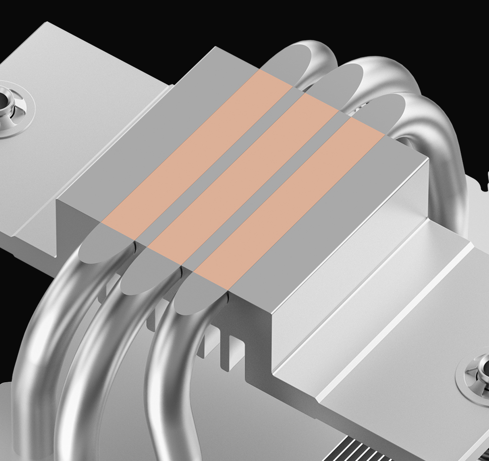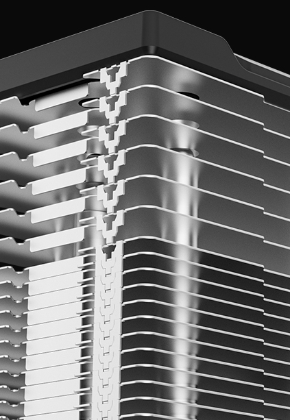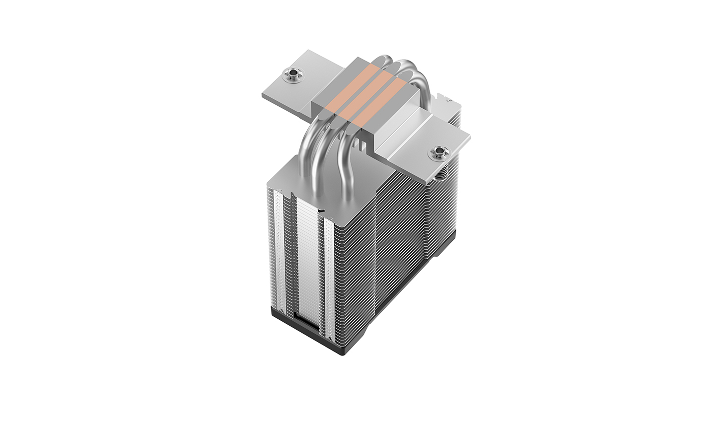 The AG300 G2 retains the signature matrix fin stack style while introducing a refined top-cover decoration for premium presence. It carries over the trusted three heat-pipe single-tower architecture and replaces RGB lighting with minimalist design for a sleek and serious look.