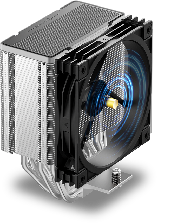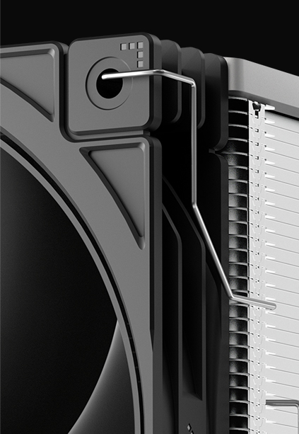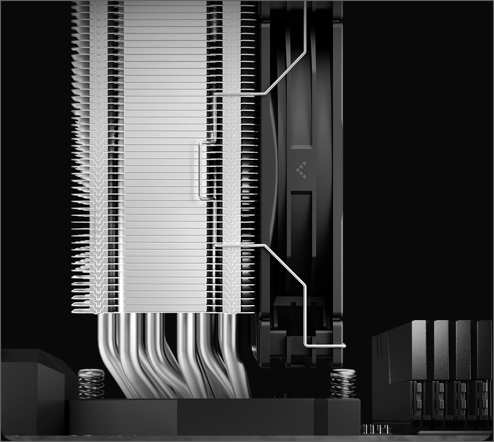 The AG600 retains the signature matrix fin stack style while introducing a refined top-cover decoration for premium presence. It carries over the trusted six heat-pipe single-tower architecture and replaces RGB lighting with minimalist design for a sleek and serious look.