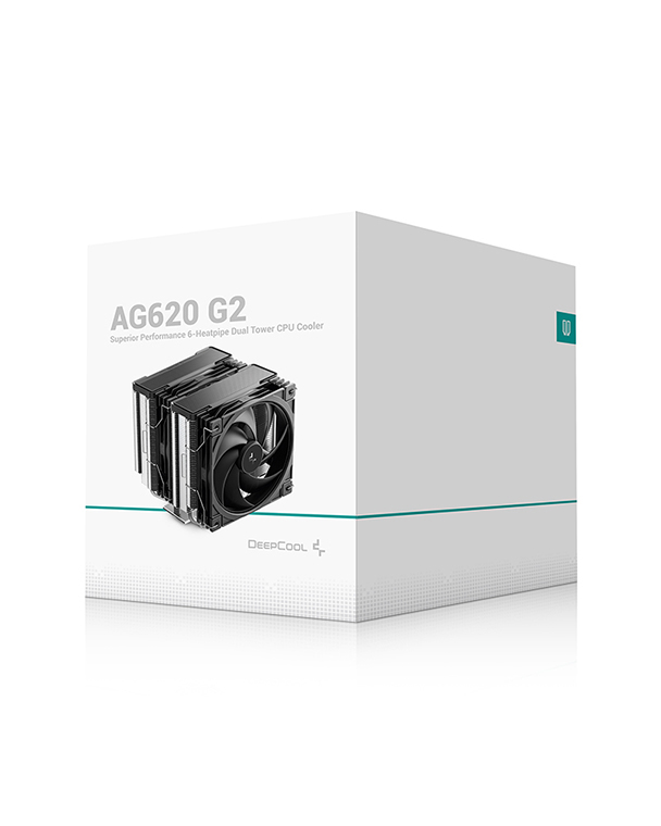 The AG620 G2 raises the bar for dual-tower air cooling with a second-generation upgrade that delivers enhanced performance and a bold new look. Featuring six heat pipes embedded in a dense dual-tower heatsink and paired with two finely tuned 120mm PWM fans for seriously powerful airflow and thermal transfer.