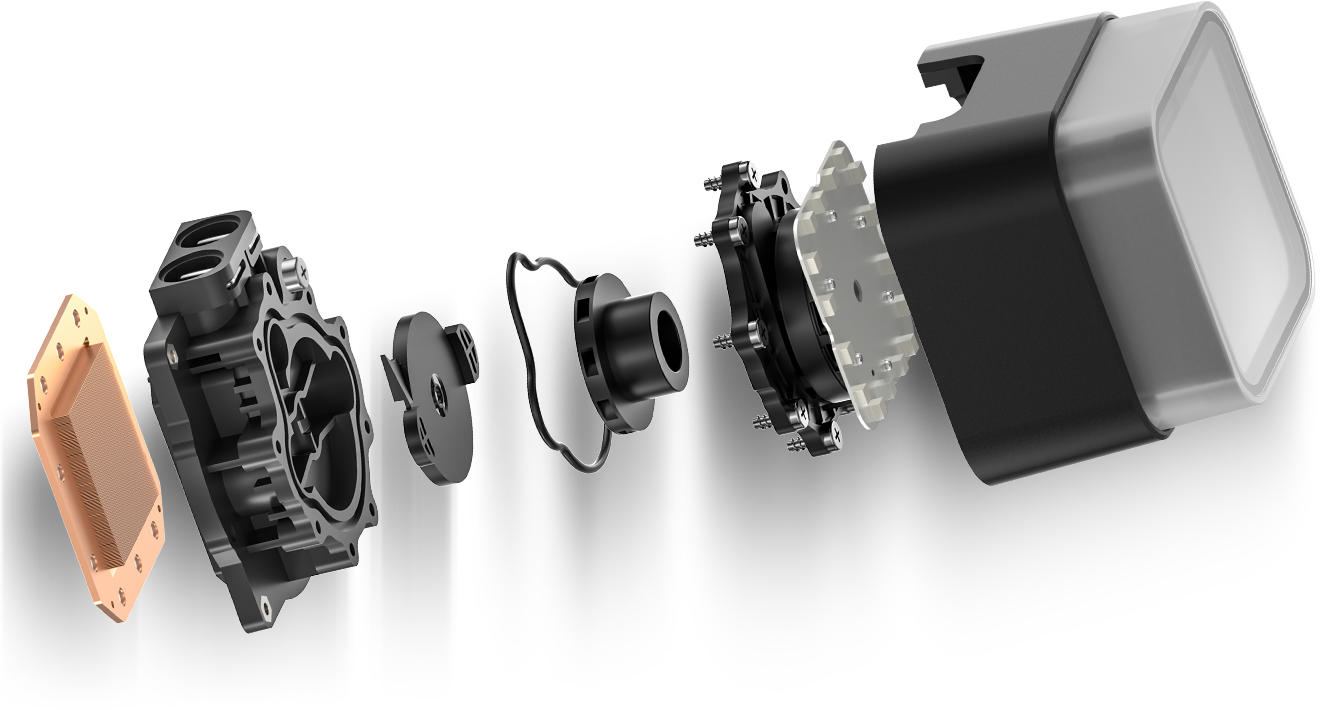 Powered by a 3-phase, 6-slot, 4-pole motor with FOC control, the 6th-generation water pump delivers more efficient, quieter operation across a PWM range of 2,500 to 3,400 RPM. An expanded copper base and fine-tuned microfin geometry help maximize thermal transfer for high-performance cooling.