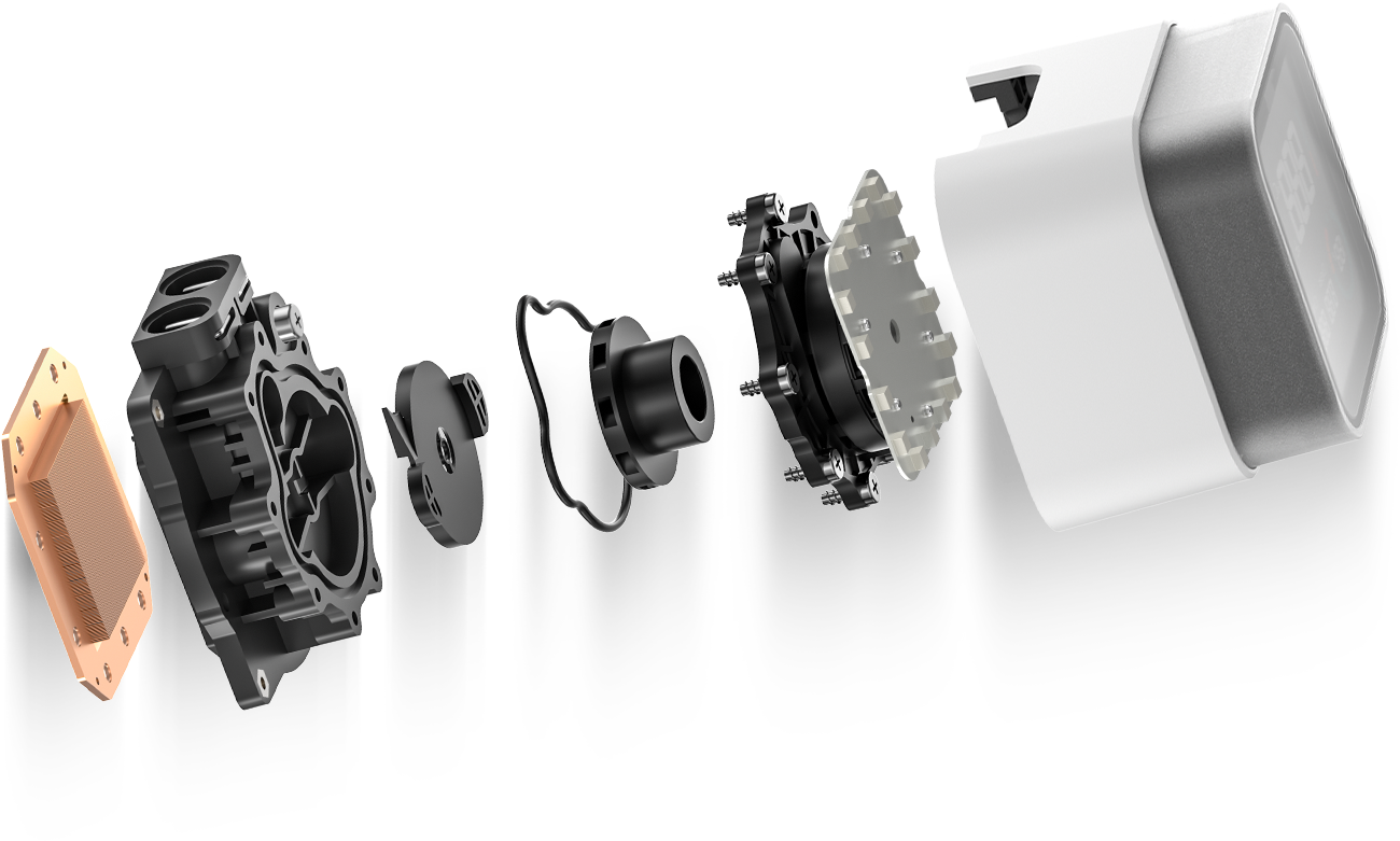 The magnetic pump cover introduces quick detachment and tool-free adjustments, with 360° rotation for perfect alignment in any build. Its precision-engineered pogo pin contact ensures secure and reliable connection, redefining convenience in liquid cooling.