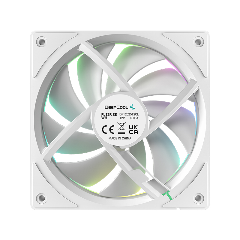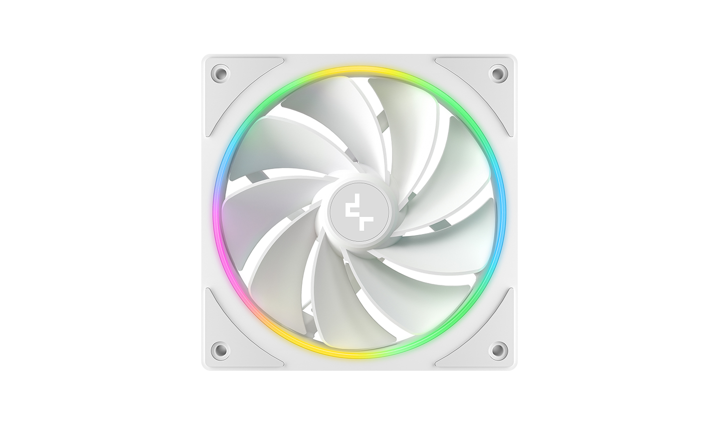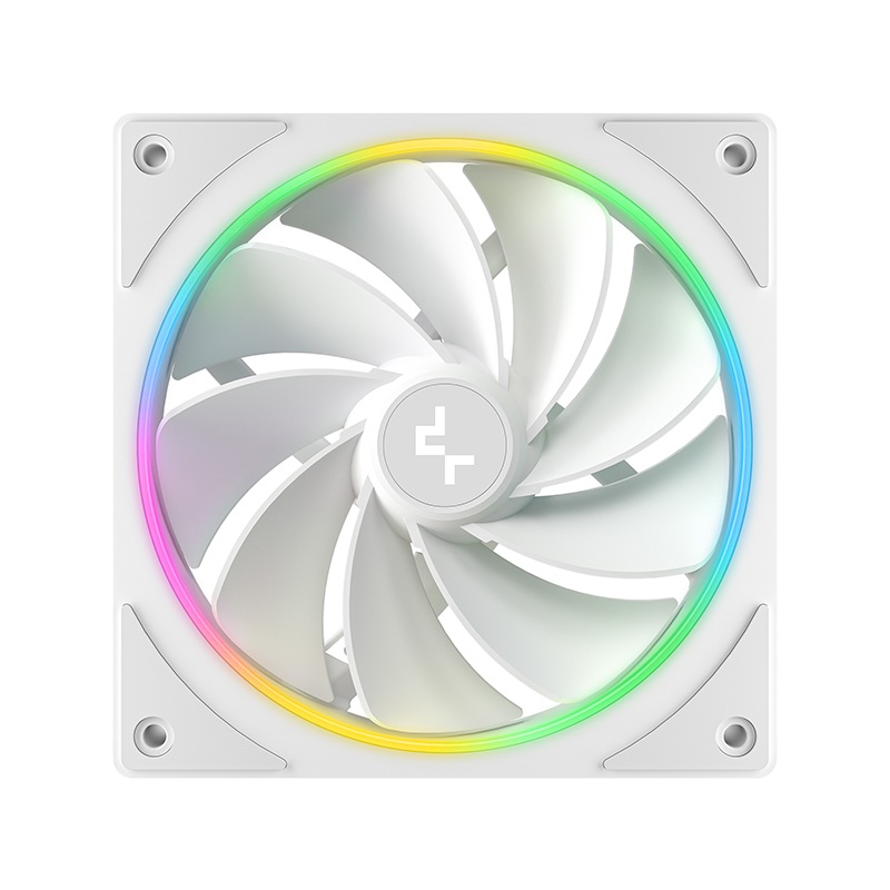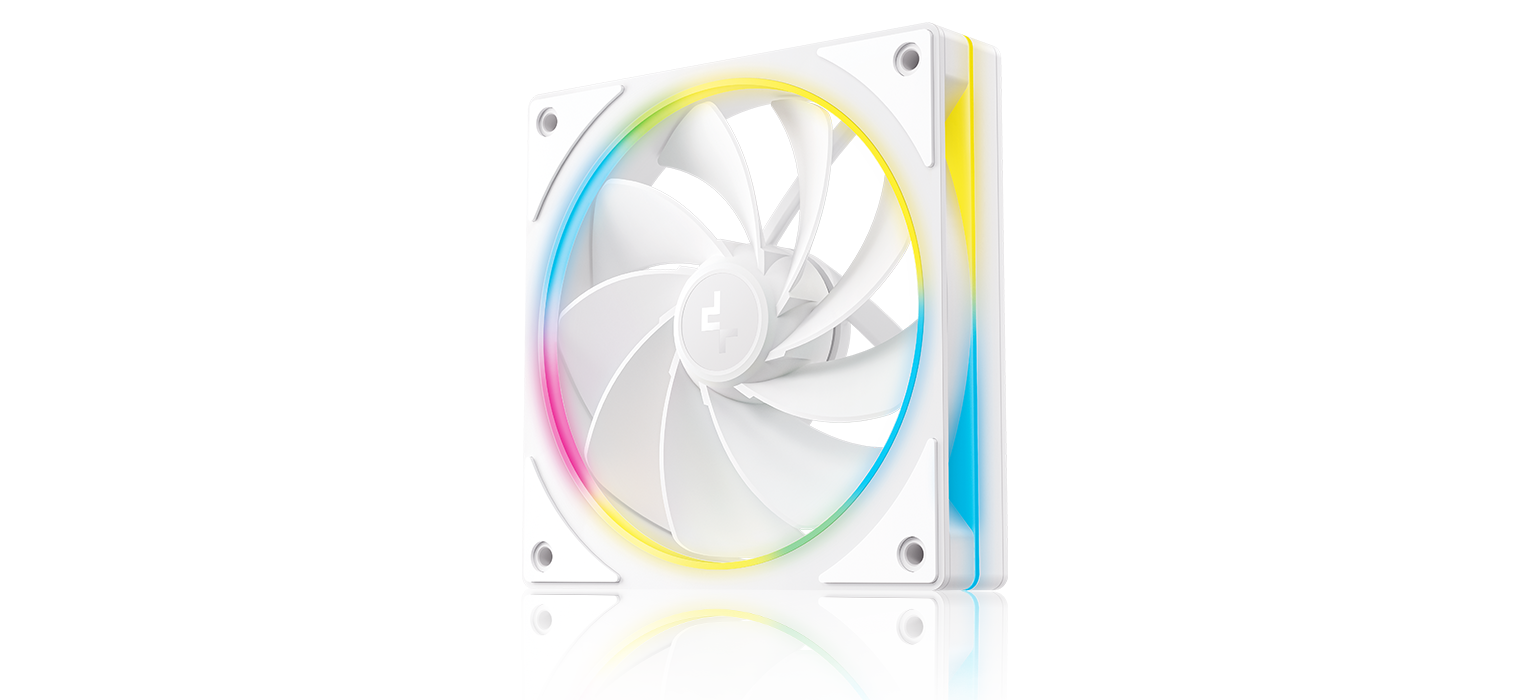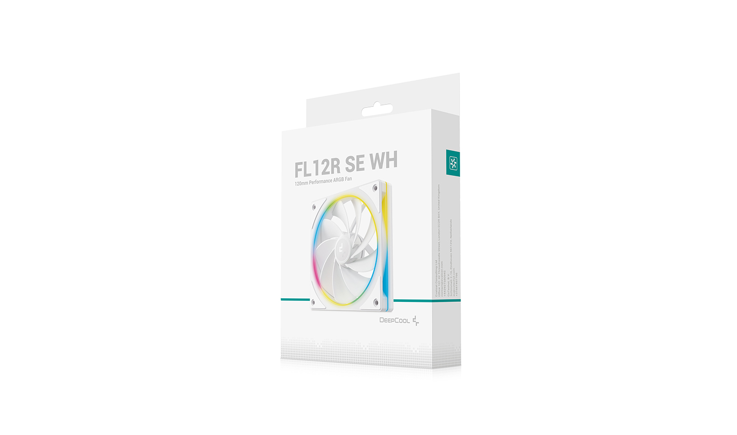 The DeepCool FL12R SE WH features a reversed fan blade design, delivering stunning lighting effects with 20 individually addressable RGB LEDs, combining vibrant colors with exceptional cooling performance.