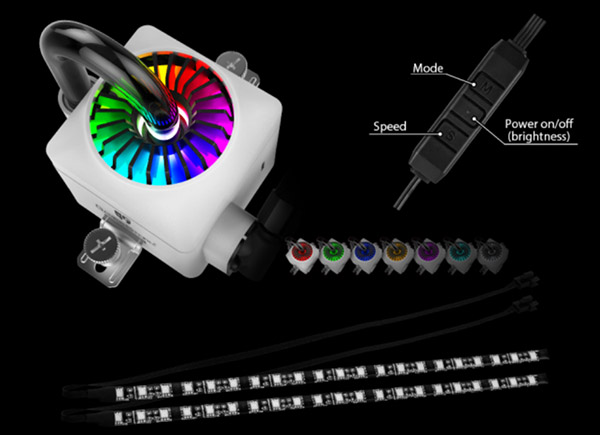 With the RGB waterblock and two attached RGB LED strips, the aesthetics of your whole rig can be easily enhanced in a flash. All you need to do is customize the LED lighting to match your system with the included wired controller.