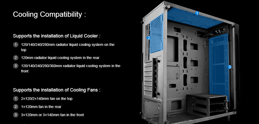 Full sized 4mm thickness, tempered glass side panel and a front panel give the case a unique look to perfectly show off your inner structure.