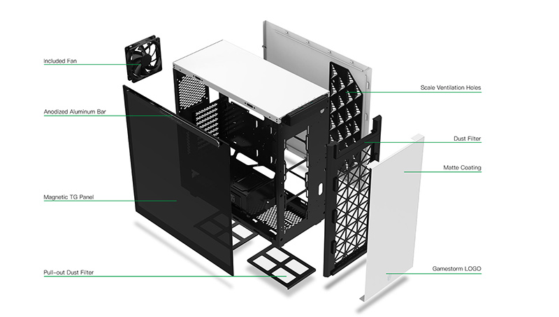 When serving as an intake, the scale array, together with the front intake can strengthen air pressure and speed, thereby significantly enhancing the cooling performance.