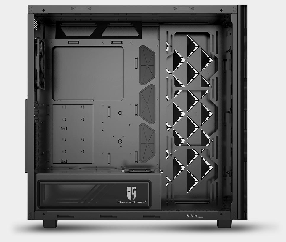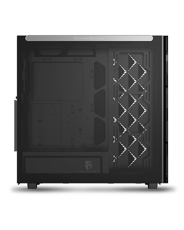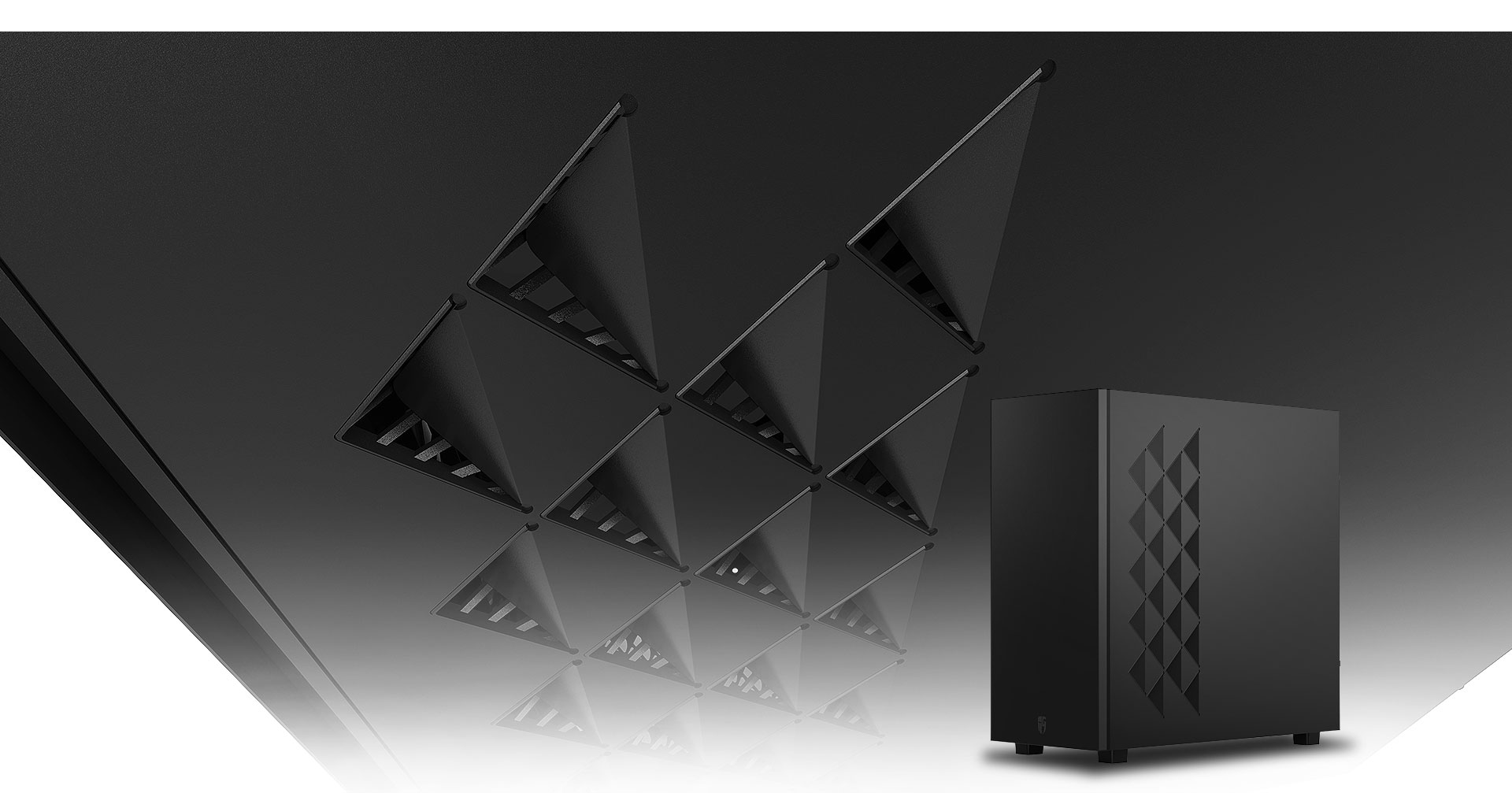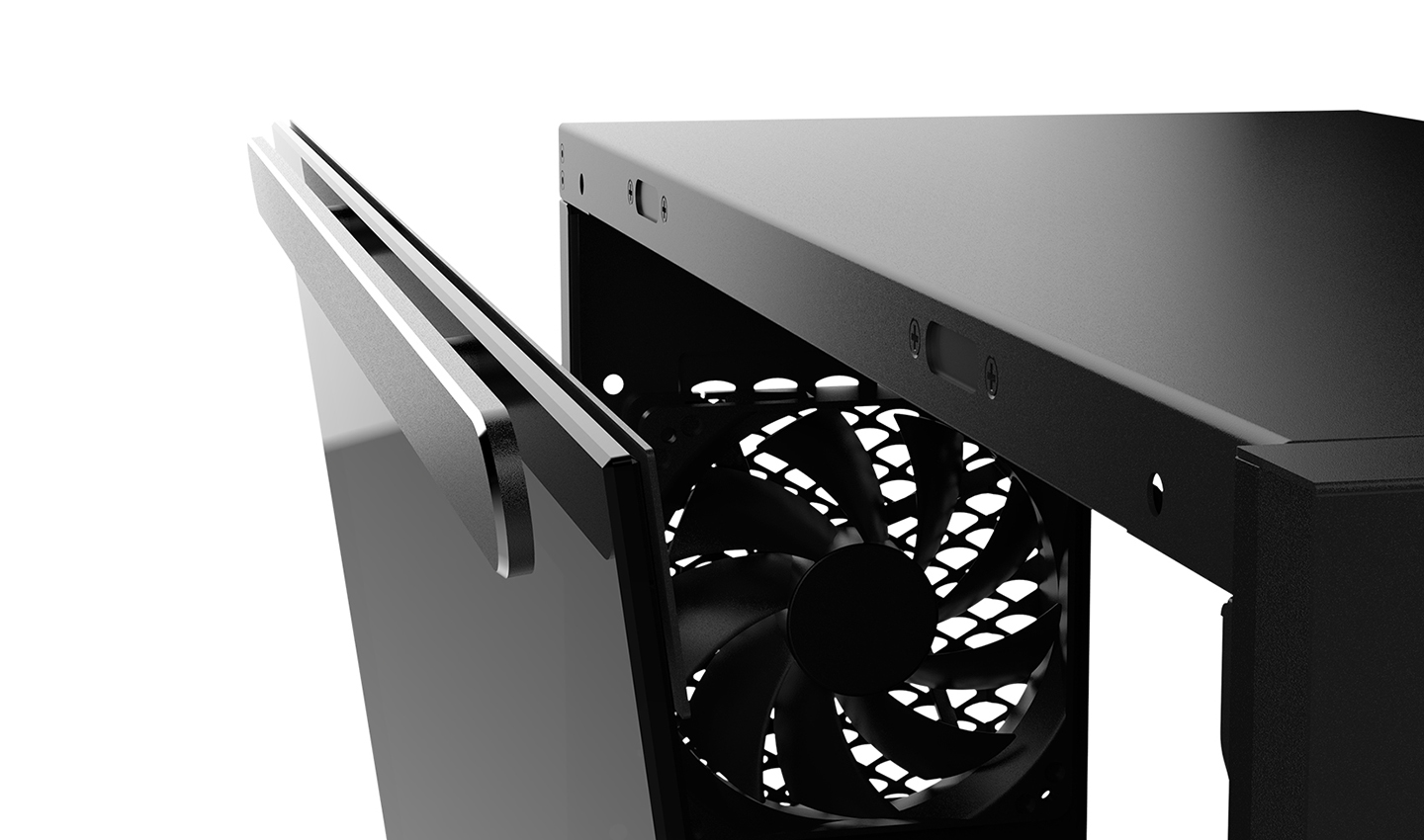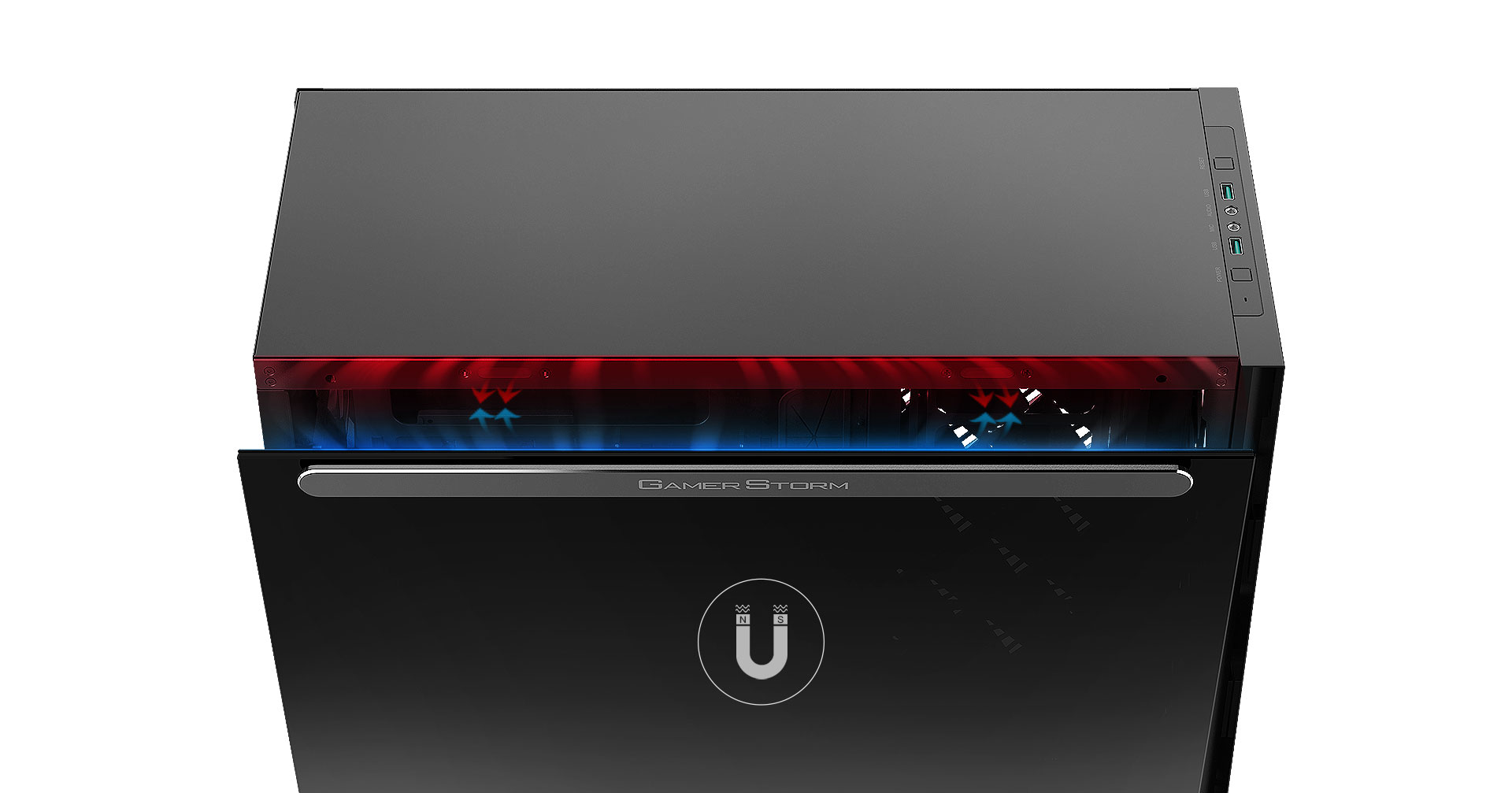 Dual air intake channels are hidden on both sides of the front panel. With the 6mm wide, low damping design, the intake channels provide abundant air flow for your system to breathe.