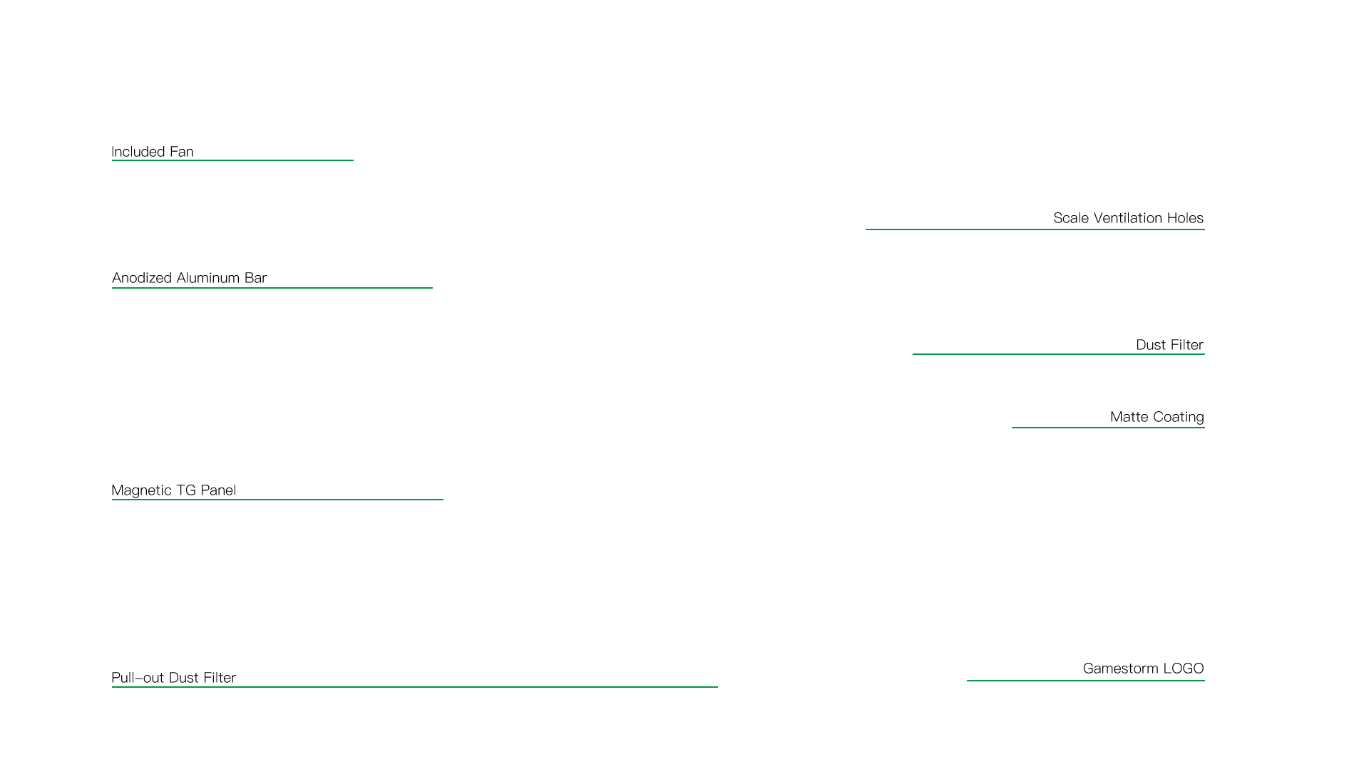 When serving as an intake, the scale array, together with the front intake can strengthen air pressure and speed, thereby significantly enhancing the cooling performance.