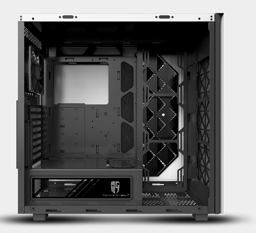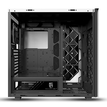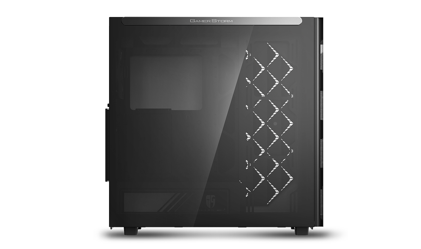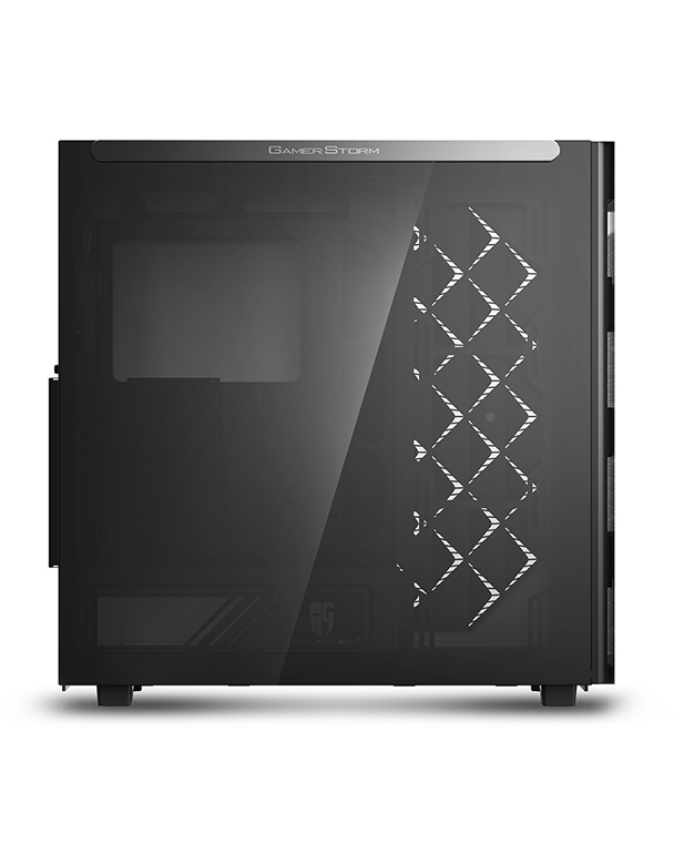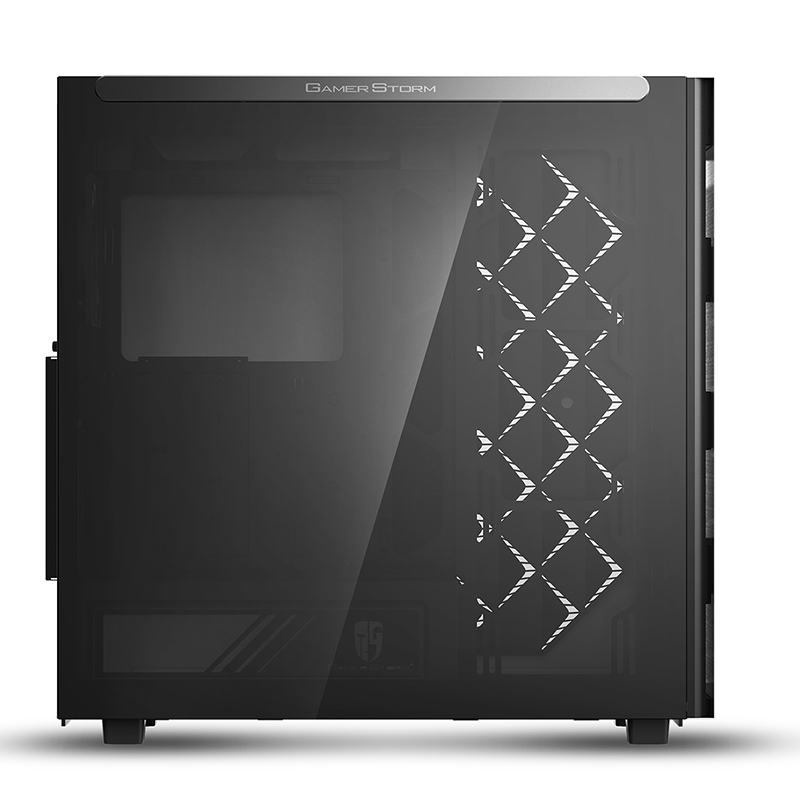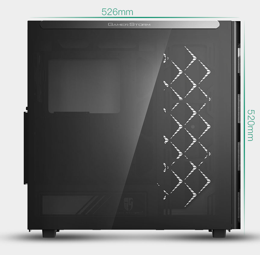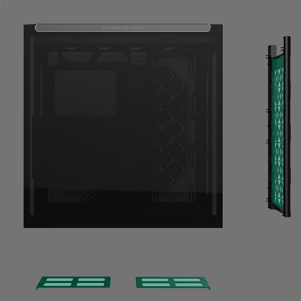 Left side panel is made of gray transparent tempered glass, mounted by permanent magnetic material that provides up to 24.5N of attraction force (approximately the gravity of 2.5Kg).