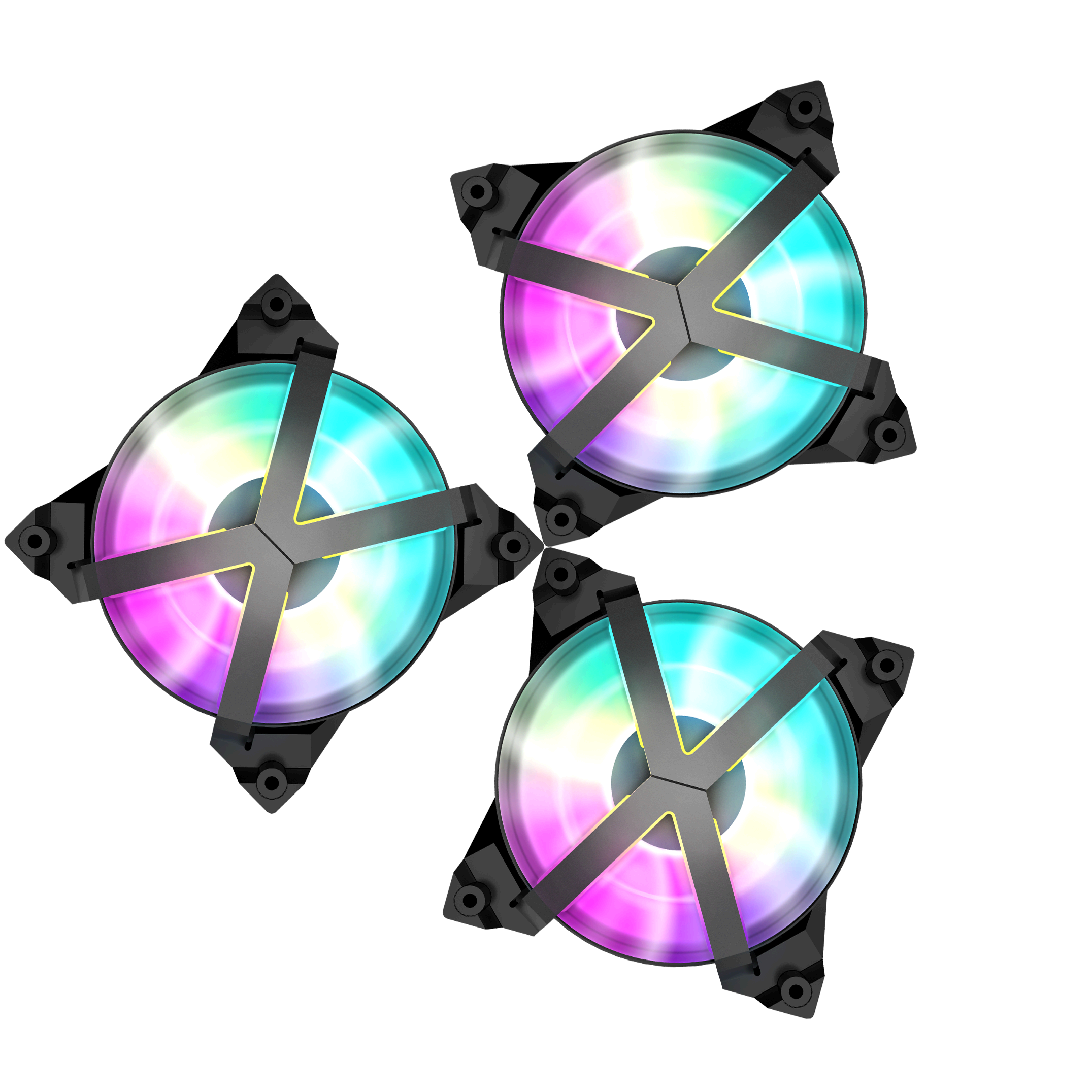 Three MF120 GT PWM fans provide vivid A-RGB lighting effects across a unique X-Frame for striking look in any build.