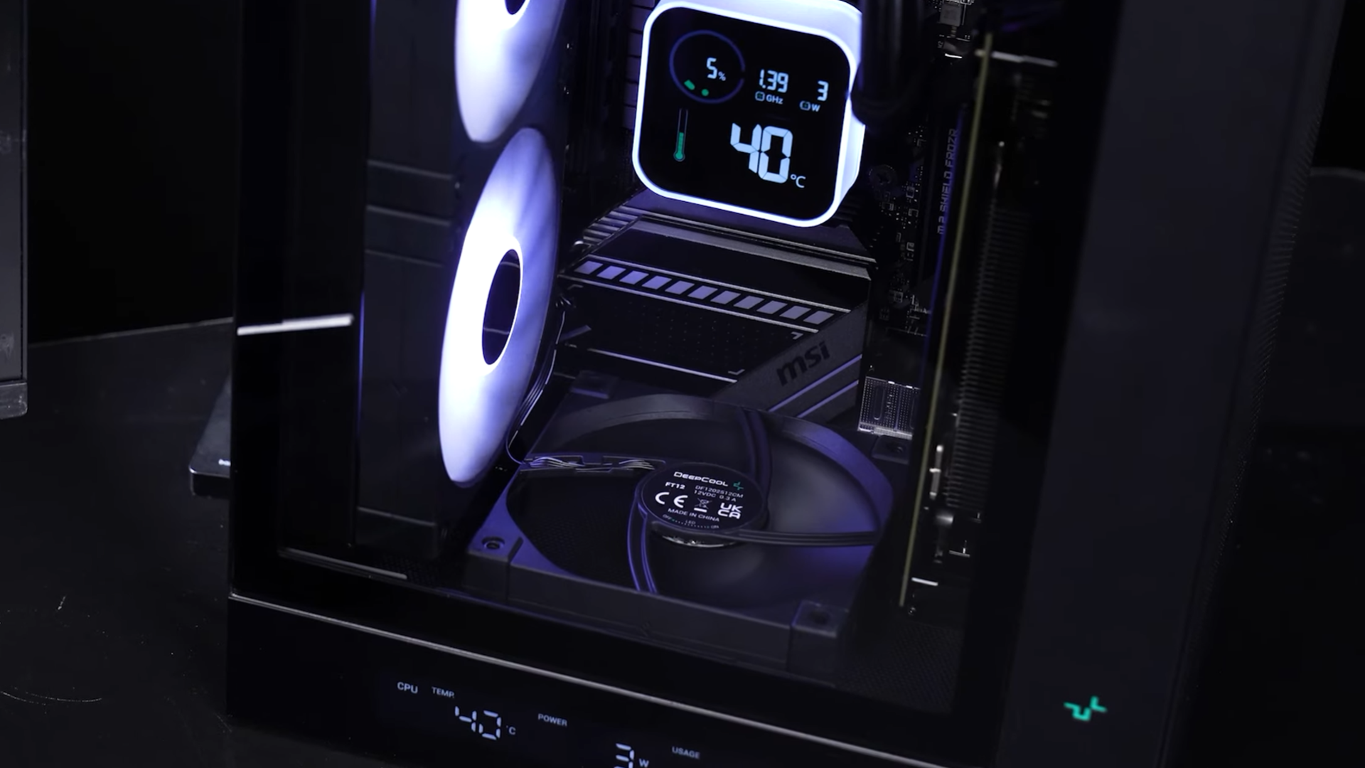 A digital display bar is integrated at the base of the case to monitor your system vitals in real time. The status mode can switch between CPU, GPU, and PSU.